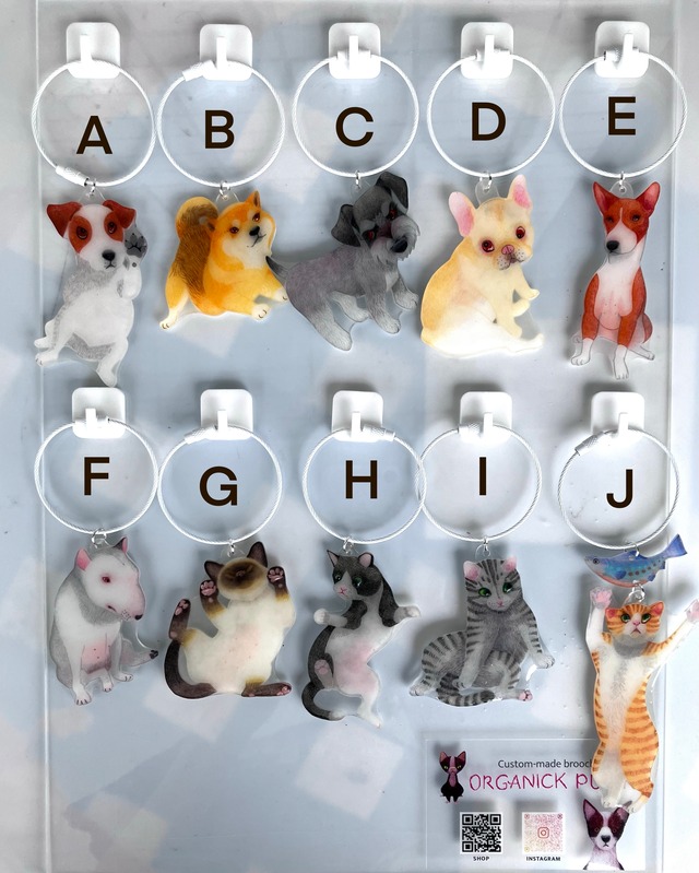 すりガラスみたいなテクスチャーのレジンと艶々ぷっくりレジンを使って特徴を出しました。 プラス¥1000でうちの子オーダーメイドも承ります。 ショップに質問する に写真を添付してください。 イラストレーターがイラストを描きバッグチャームに仕立てます。